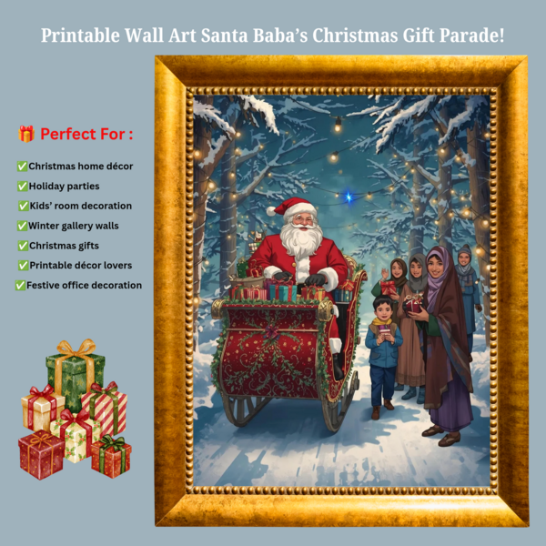 Santa Baba’s Christmas Gift Parade,Festive Winter Art Print,Holiday Digital Download