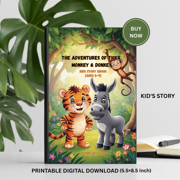 The Adventures of Tiger, Monkey & Donkey,Kids Story eBook About Friendship and Forest Animals, Digital download