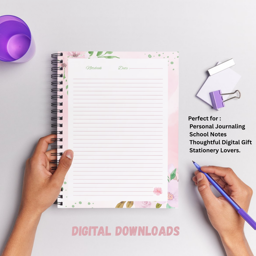 Elegant Pink Rose Journal with lined pages — perfect for writing, self-care, or daily notes. Print at home for beautiful results using a high-quality printer. Instant digital download. 🌷